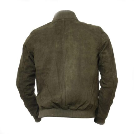 Men Olive Suede Bomber Jacket