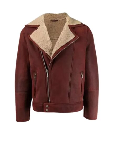 Men Brown Suede Shearling Jacket